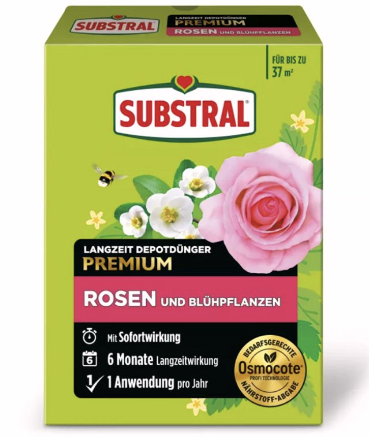 Substral gnojivo s dugim delovanjem Osmocote za ruže i cvetne grmove prilagođeno je potrebama svih vrsta ruža i cvetnih grmova: obični jorgovan, vajgelija, crvena hudika, kao i cvetnih trajnica: astra, ljiljan, plameni (floks), peonija, kokotić, rudbekija.