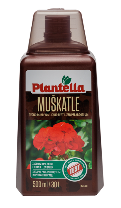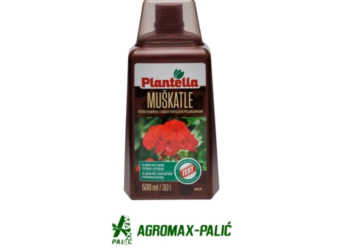 Tečno mineralno đubrivo za pelargonijume, muškatle obezbeđuje obilno cvetanje svih vrsta muškatla.
