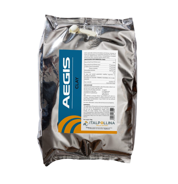 AEGIS CLAY je mikorizni inokulum Glomus intraradices i Glomus mosseae, u praškastom obliku. Pogodan je za mešanje sa kompostom, distribuciju u plastenicima i takozvanu kupku za sadnice.