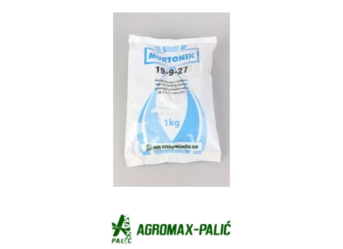 Neorgansko složeno čvrsto NPK đubrivo sa mikroelementima (B, Cu, Fe, Mn,Zn), kristalna vodotopiva đubrivo Doza, koncentracija: 0,5-2,5g/l vode Preporučena količina, vreme i način primene: Murtonik 19:9:27 je đubrivo koje se primenjuje u različitim kulturama (povrće, voće, vinova loza) posle formiranja plodova, u krompiru posle cvetanja, u ratarskim kulturama najčešće uz herbicidne ili fungicidne tretmane.