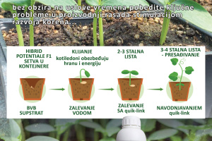 Biostimulator koji snažno stimuliše razvoj korena i korenovih dlačica, omogućavajući mladim biljkama krastavca efikasno usvajanje vode i hraniva.