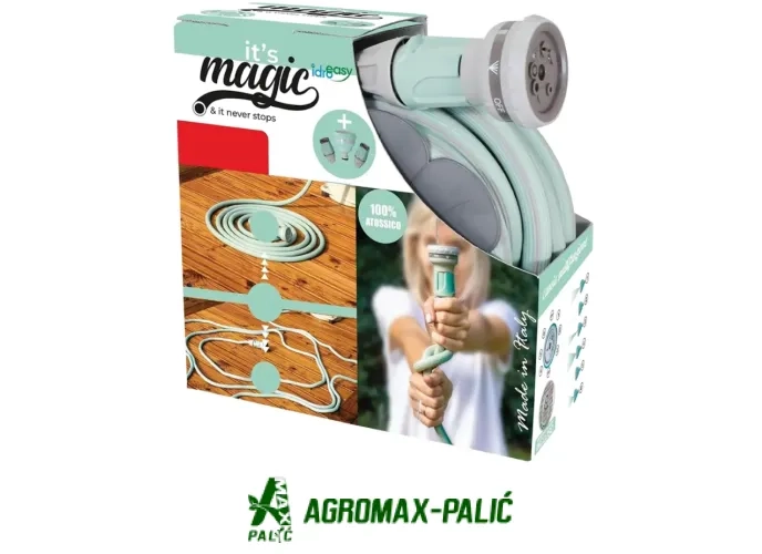 - Fleksibilno i lagano; - Patentirano - 100% Made in Italy; - Proširivo od 2x do 3x; - Anti-kink i anti-torziona struktura; - Uključuje dva originalna priključka; - 6 uključenih mlaznica; - Ne samo za vrt, već i za kampere, brodove, terase, balkone, ... - Inovativno pakovanje dugog životnog veka: plastična vreća za višekratnu upotrebu; - Ušteda prostora; - Ekološki.