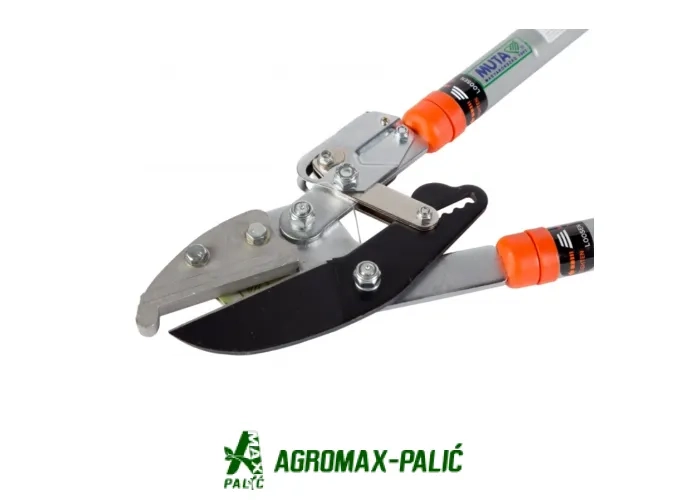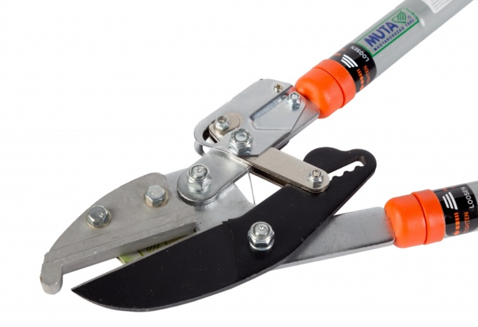 MUTA makaze za grane sa ravnim nožem i sa prenosnim mehanizmom račne je moćan alat u voćnjacima, vinogradima i okućnici. Dužina alata pomoću teleskopske aluminijumske drške može da se namešta izmedju 650 i 970 mm, što omogućuje dohvatanje i višljih grana. Ergonomska i protivklizuća drška omogućuje bezbedan i lagan rad sa alatom.