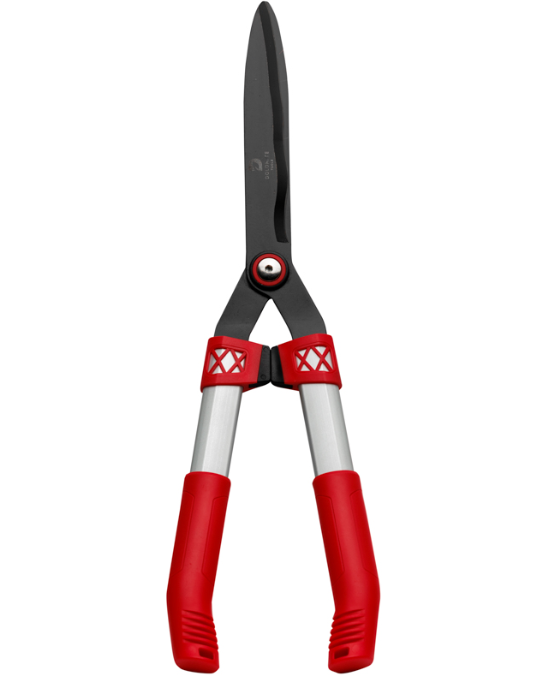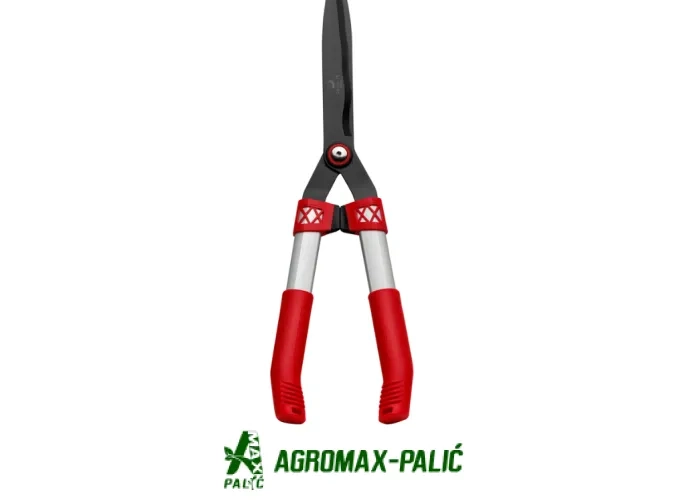 Dvoručne makaze za orezivanje žive ograde, dužine 58cm, sa aluminijumskim drškama, pp rukohvatima i čeličnim sečivom dužine 235mm i prečnikom sečenja 60mm. Pouzdan alat ergonomskog dizajna, lagan za rukovanje, prilagođen svakom korisniku.