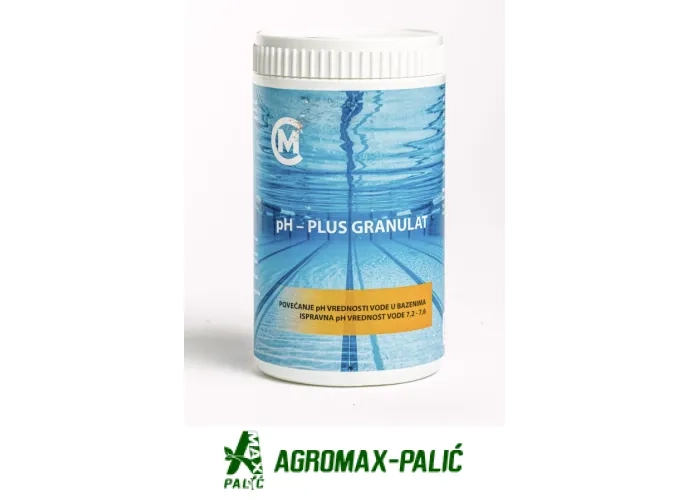 pH-PLUS GRANULAT je sredstvo za povećanje pH vrednosti vode u bazenima za kupanje. pH-PLUS granulat je baznog karaktera, lako se rastvara u vodi i upotreba je sigurna i bezbedna.