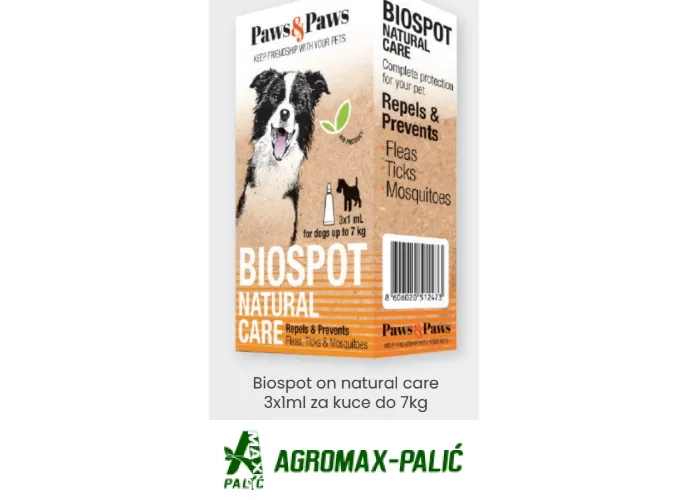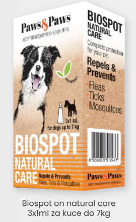 PAWS&PAWS Ampula BioSpot Natural Dog za pse, antiparazitske
