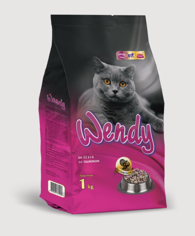 WENDY je potpuna hrana sa ukusom ćuretine namenjena za ishranu mačaka svih rasa i uzrasnih kategorija. WENDY obezbeđuje vašem ljubimcu potpunu i uravnoteženu ishranu. Hrana je napravljena od pažljivo biranih sastojaka vrhunskog kvaliteta, a formula je prilagođena nutritivnim potrebama mačaka. Sadrži sve vitamine i minerale neophodne za pravilnu i izbalansiranu ishranu.