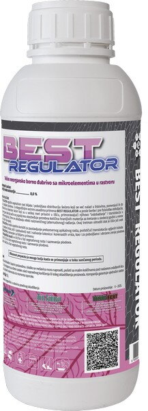 BEST REGULATOR, zajedno sa patentiranom tehnologijom prisutnom u proizvodnom procesu ovog đubriva reguliše vegetativan rast i poboljšava distribuciju šećera koji se već nalazi u listovima, pomerajući ih do korena, pupoljaka i plodova. BEST REGULATOR promoviše translokaciju šećera u floem, a samim tim i u organe za skladištenje hranljivih materija.