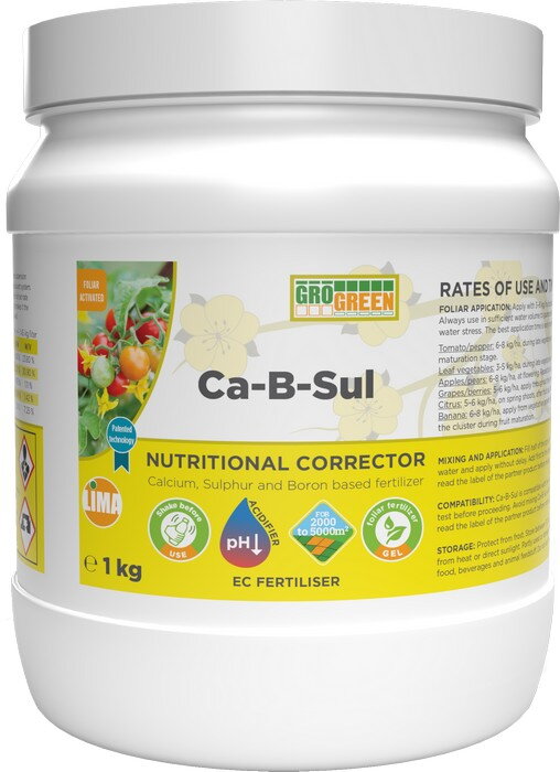 GROGREEN Gel Ca-B-Sul je suspenzija visokokoncentrovanog đubriva sa kalcijumom koje se nalazi u sinergiji sa sumporom i borom, pH buffer i komleksni adjuvantski sistem.
