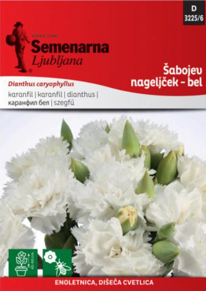 Cveće ŠEBOJ KARANFIL BELI 3225/6 | Cveće | Agromax Palić | Seme povrća, seme začina, seme trava Skip to main content