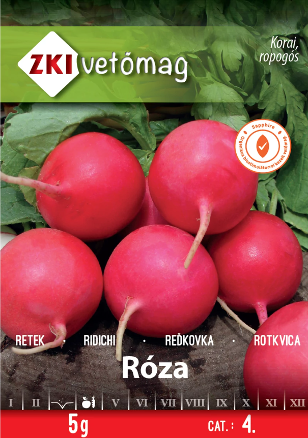 Pogodna je za setvu u ne grejanim plastenicima ili za ranu proizvodnju na otvorenom. Srednje kasna sorta, sa dužinom vegetacije od 30-40 dana. Ima bujnu lisnu masu, svetlije zelene boje. Crveni plodovi su krupni, prečnika oko 4,5-5 cm. Okruglog ili blago spljoštenog oblika, sa belim mesom i tankom korom. Nije sklon šupljikavosti ploda. (Kesica sadrži oko 450-500 sem.)