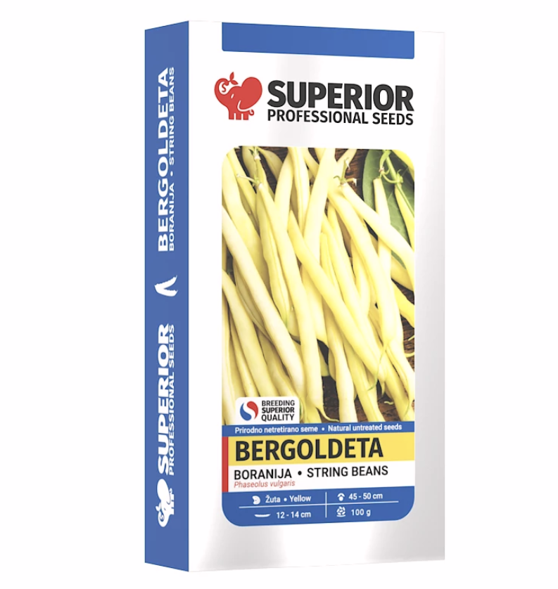 „Bergoldeta je niska žuta boranija u tipu žute olovke, sa mahunama 12–14 cm i visokim prinosom. Pogodna za svežu potrošnju i preradu, otporna na bakterioze i viruse.