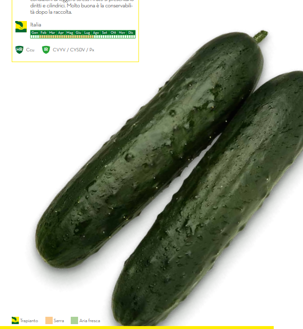 Ako tražiš profesionalni slicer hibrid koji pruža duge, pravilne i tamnozelene plodove vrhunskog kvaliteta, Iperione F1 je idealan izbor. Njegova stabilnost, otpornost i izuzetna svežina nakon berbe čine ga jednim od najpouzdanijih hibrida za intenzivnu komercijalnu proizvodnju.