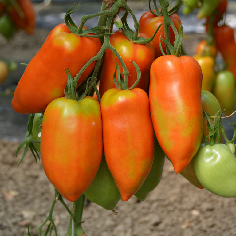 Plodovi su duguljasti, u obliku paprike, tanke pokožice i intenzivno crvene boje.
