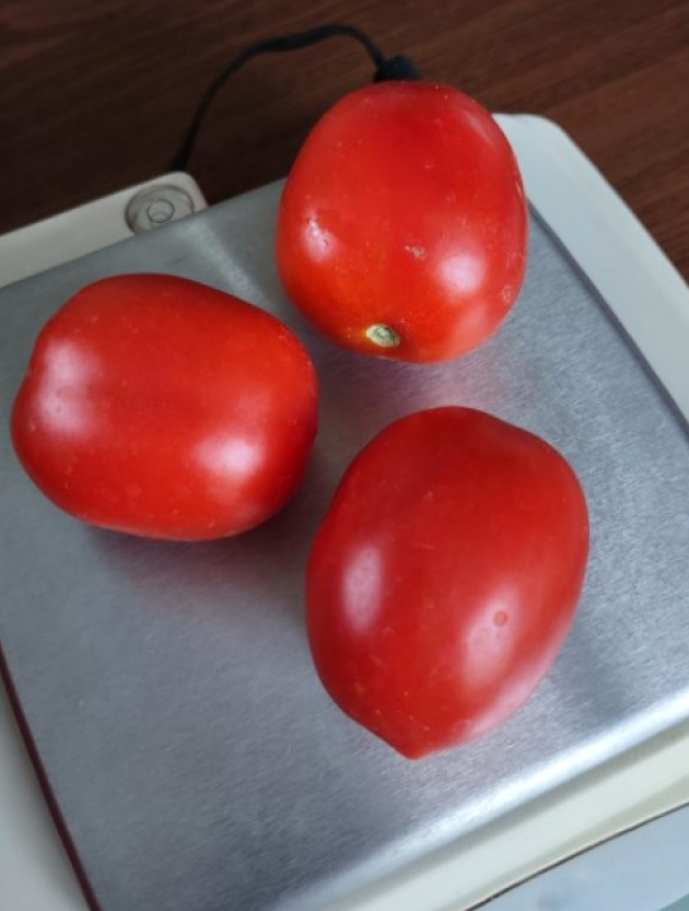 Plodovi su čvrsti, pravilnog oblika i jarko crvene boje, sa visokim udelom suve materije, što ih čini izuzetno pogodnim za preradu u pelate i sokove od paradajza.