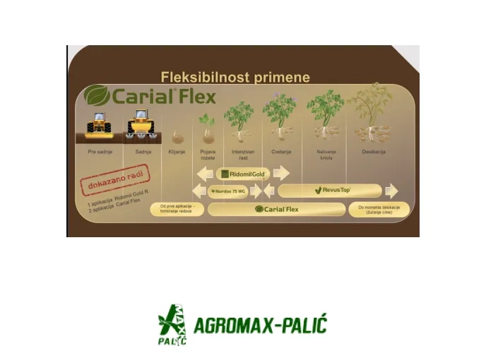 CARIAL® Flex je lokalsistemični folijarni fungicid, preventivnog i kurativnog delovanja, koji se primenjuje u usevu krompira, za suzbijanje prouzrokovača plamenjače (Phytophthora infestans).