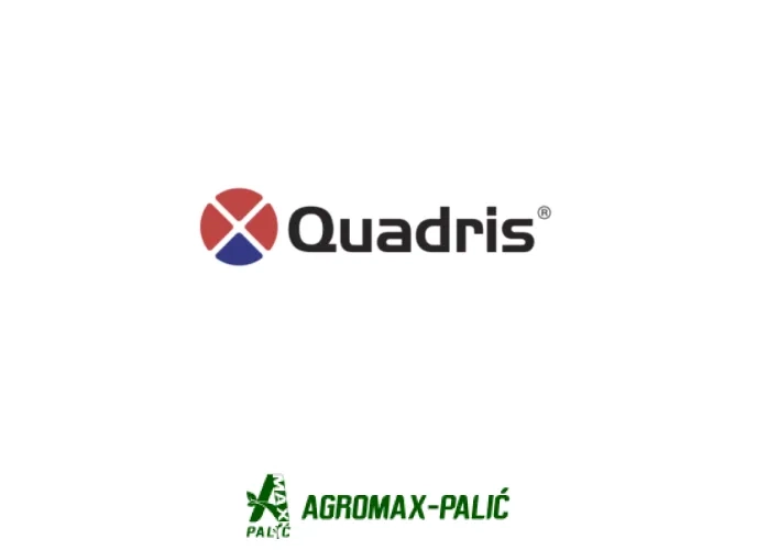 QUADRIS je sistemični fungicid sa preventivnim, kurativnim i eradikativnim delovanjem. Primenjuje se za suzbijanje prouzrokovača plamenjače (Plasmopara viticola) i pepelnice (Uncinula necator) vinove loze, plamenjače (Phytophthora infestans) i crne pegavosti (Alternaria solani) paradajza i krompira, plamenjače krastavca (Pseudoperonospora cubensis), pepelnice (Erysiphae heraclei) i crne pegavosti (Alternaria dauci) mrkve, pegavosti lista cvekle (Cercospora spp.), sušenja lastara maline (Dydimella applanata) i sive pegavosti lista jagode (Mycosphaerella fargariae). Sporedno deluje na truleži i pepelnice.