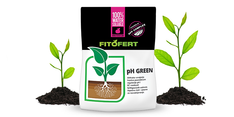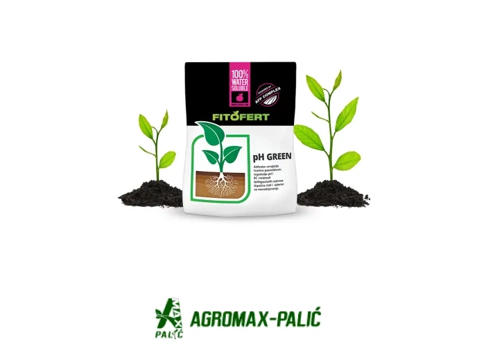 FITOFERT pH GREEN je proizvod na bazi organskih kiselina, namenjen za tretman zalivnih voda i zemljišta visokog pH. Visok pH i velika količina karbonata blokira dostupnost hraniva iz zemljišta i čini veliki broj hranljivih elemenata nedostupnim. Proizvod svojim delovanjem istovremeno snižava i pH i EC tvrdih zalivnih voda. Kontinuiranom upotrebom preparata uspešno se snižavaju pH i EC u zalivnoj vodi kao i zemljištu i povećava se dostupnost i asimilacija hraniva. Pre upotrebe iskontrolisati pH i EC zalivne vode i zemljišta i uporediti ih sa optimalnim uslovima za biljnu vrstu koja se gaji.