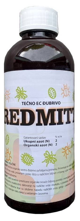 REDMITT je tečno organsko đubrivo koje sadrži posebno sintetisane organske nosače i esencijalna ulja, koja ispoljavaju propratno insekticidno delovanje, a posebnu efikasnost pokazuje na paucima i grinjama.