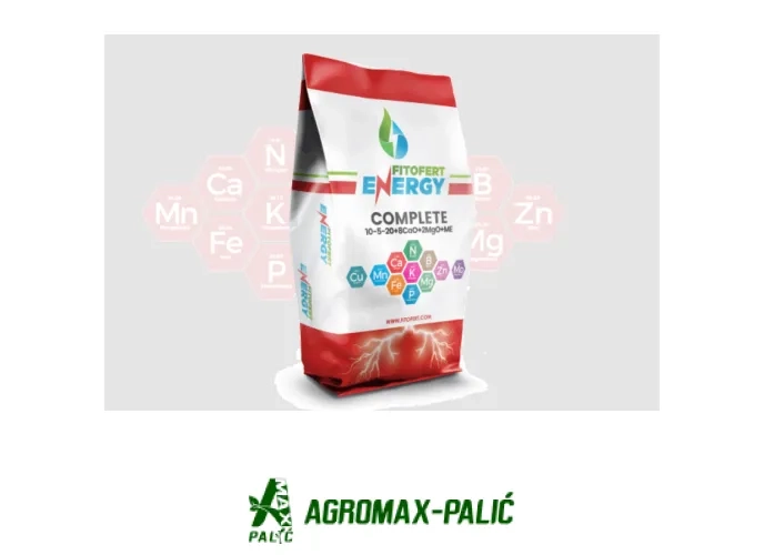 Fitofert ENERGY COMPLETE 10:5:20 dostupan je u pakovanju od 10 kg, što omogućava praktičnu upotrebu za različite površine i kulture.