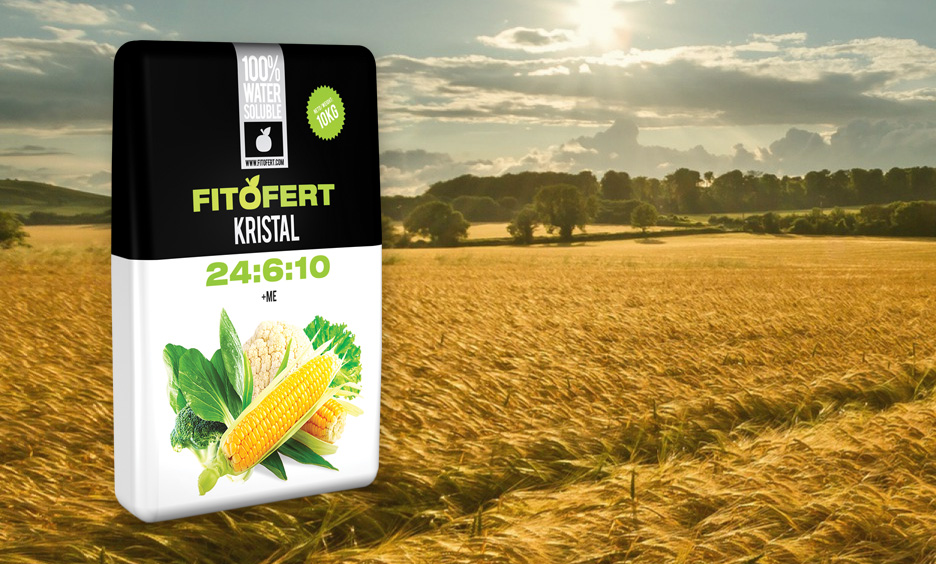 FitoFert Kristal 24:6:10 +1MgO+Me je đubrivo sa viskom koncentracijom azota, pogodno za primenu kod biljaka sa velikom asimilacijom azota, u fazi intezivnog rasta. Takođe ga preporučujemo za folijarni tretman useva kukuruza prilikom herbicidnog tretiranja preparatima na bazi sulfonil uree. Ovim preparatom se u potpunosti neutrališe herbicidni stres i izbegava takozvano stopiranje kukuruza i drugih biljaka. Preparat je kompatibilan sa većinom sredstava za zaštitu bilja osim alkalnih bakarnih preparata. Primena: folijarno konc. 0,3% -0,8% fertigac. konc. 0.08-0.1%.