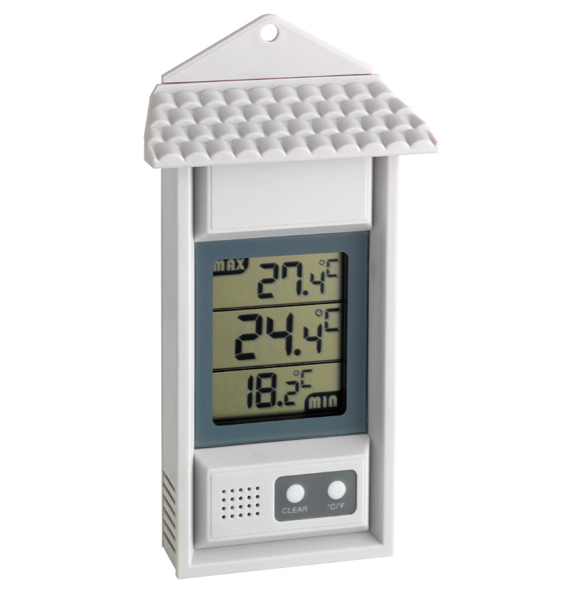 Ovaj digitalni Minima-Maxima termometar je pravi uređaj za spoljašnju upotrebu. Zahvaljujući kućištu otpornom na vremenske uslove, lako se postavlja na otvorenom prostoru. Najviše dnevne i najniže noćne temperature prikazuju se na jasnom ekranu sa digitalnom preciznošću.
