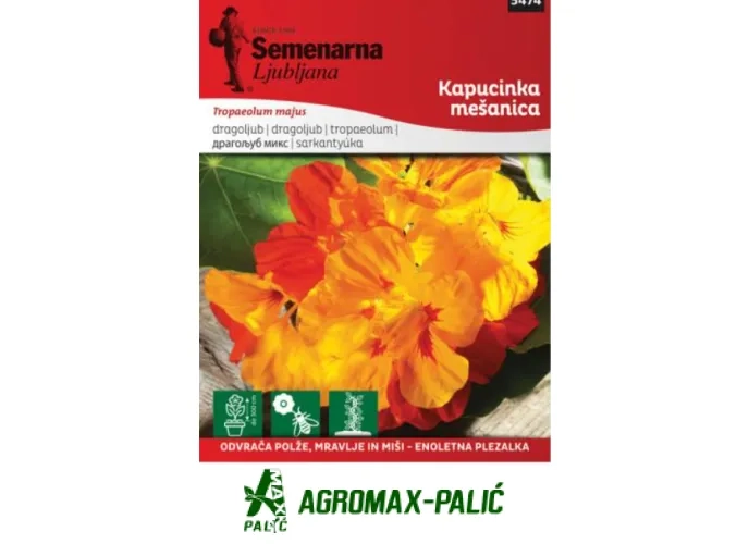 Seme klija za 14-20 dana. Jednogodišnja biljka sa dugim, visećim, bujno cvetnim izdancima koji pokrivaju i zasenjuju pod bašte, ulepšavaju gole betonske zidove, drvene zidove, balkonske ograde. Cvetovi su žuti, narandžasti i crveni. Raste na humusnom, ali ne previše plodnom vlažnom zemljištu i na suncu ili poluseni. Štiti povrće od lisnih vaši i puževa.