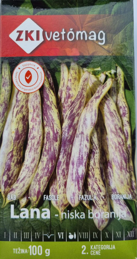Niska boranija, mahune su srednje duzine, bedo žućkaste boje sa ljubočastim šarama. Ukusna, bez konaca i odlična za svežu upotrebu i zamrzavanje. Sorta srednjeg sazrevanja, urednim branjem obezbeđuje kontinuirano zametanje, a za navodnjavanje i prihranu zahvaliće se visokim prinosom. Može se koristiti kao druga kultura u plodoredu.