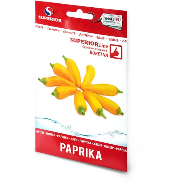 Buketna paprika je ljutog ukusa i niskog rasta. Plodovi su dugi i šiljasti, žuto-zelene i žute boje, dužine 8-12 cm. Zahtevaju sunčan položaj, seme klija 15-20 dana. Seje se u martu i aprlilu u tople leje, a rasađuje u maju. Pogodna je za svežu upotrebu, sušenje kao i dodatak jelima.