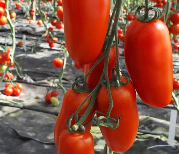 „Sanmaro F1 je polukasni hibrid paradajza tipa San Marzano, krupnih mesnatih plodova oko 100 g, namenjen za sušenje, kiseljenje u ulju i preradu na otvorenom polju.