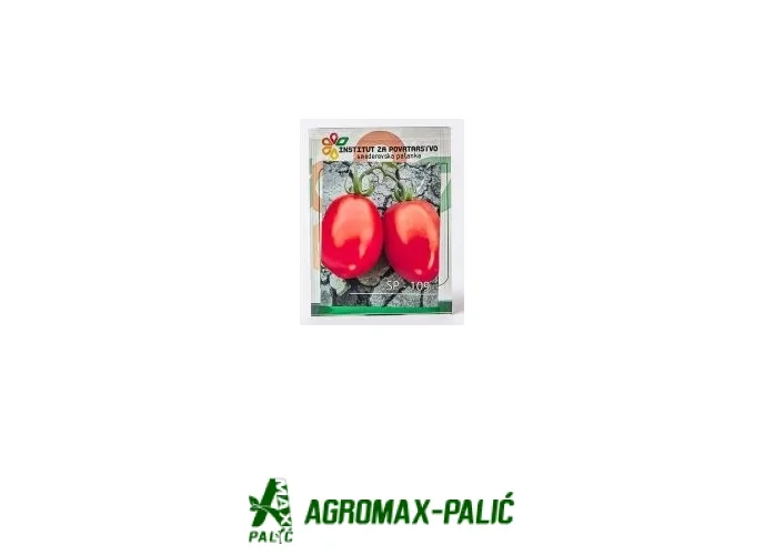 „SP-109 je rani determinantni paradajz za industrijsku preradu i mehanizovano branje. Plodovi su 70–80 g, čvrsti, izduženi, jarko crveni. Ključne reči: SP-109, industrijski paradajz, seme paradajza, paradajz za pelate, prerada paradajza.“