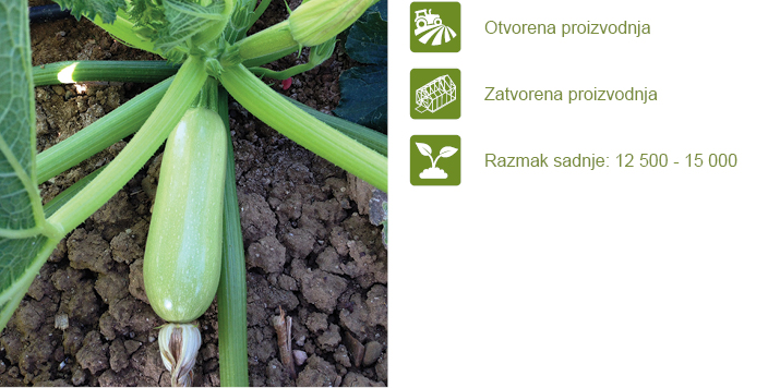 Savršen izbor za sveže tržište, supermarkete i preradu. Plodovi su visokokvalitetni atraktivne svetlo zelena boje. Veoma visoka paleta otpornosti na viruse mozaika i pepelnicu. Plodovi cilindričnog oblika, ujednačene veličine i boje. Pogodan za sve termine setve, dobro se transportuje. Visoka homogenost ploda tokom dugog perioda žetve.