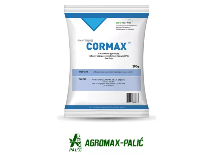 najbolje sistemično delovanje i brzo kretanje kroz biljku u svojoj hemijskoj grupi Anilinopirimidina. Vrlo efikasan na gljive koje izazivaju trulež cvetova i plodova, kao i krastavost plodova. Preparat Cormax je visoku efikasnost u zaštiti jabuke dao u kombinaciji sa preparatom Fiesta (0,75 kg/ha). Ima odlično delovanje i na nižim temperaturama (+5°C). Odlična otpornost na spiranje padavinama te dva sata po tretiranju depozit pesticida se ne može sprati. Preparat nije fitotoksičan ako se primenjuje prema uputstvu. Ne sme se mešati sa insekticidima izrazito kisele reakcije. Praktično neotrovan za pčele.