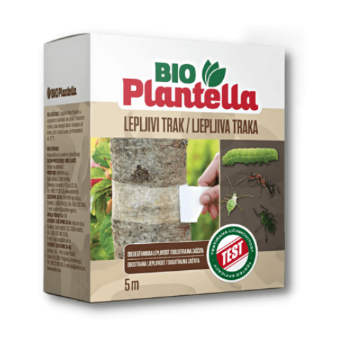 Kada se insekti premeštaju sa zemlje u krošnju u potrazi za hranom, njihovo kretanje preprečimo sa lepljivom trakom. Nalepimo je oko stabla voćke. Štetnici se uhvate na lepljivi premaz na traci i tako ne dođu do cilja. Prednosti: - dvostrano lepljiva traka - lako za korišćenje - prirodna mehanička zaštita Pakovanje: 5 metar